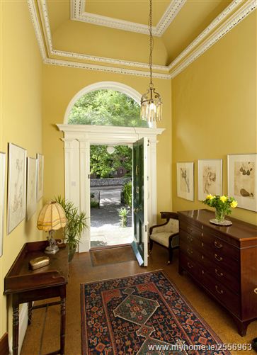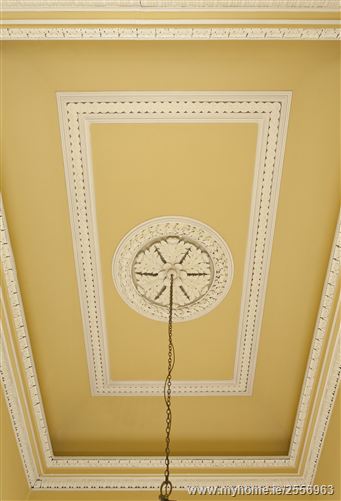 An elegant hall with a fine period ceiling, beautifully decorated with acanthus leaf ceiling rose and frieze work.