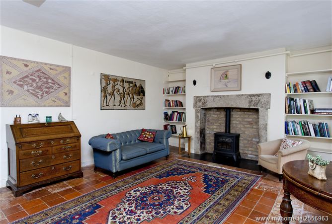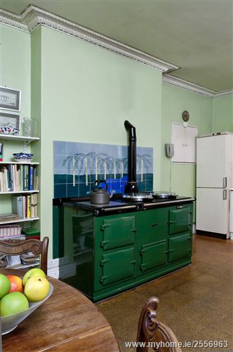 To the rear and two steps down from the rear hall floor, with windows overlooking the side and the rear of the house, a green AGA has pride of place in this well-loved kitchen, with white high and low level units, plumbed for dishwasher, washing machine and with a serving hatch to the main hall.