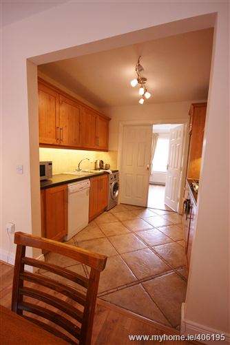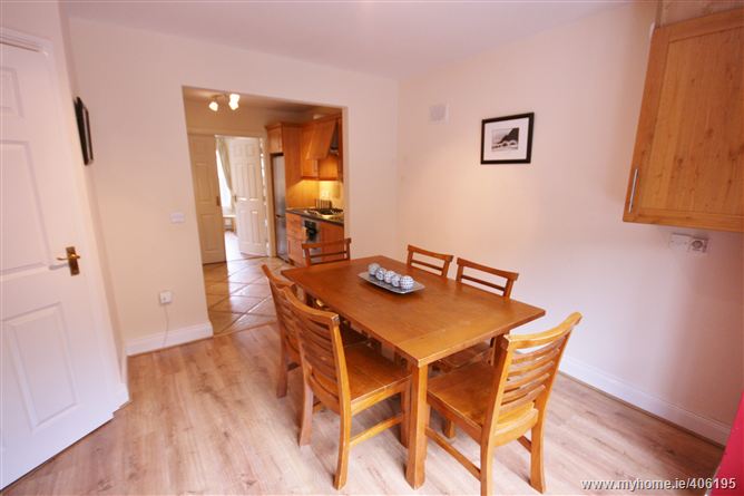The Dining room is to the front of the property, with bay window and feature wall. The kitchen leads straight from this space with beech high and low level units, Zanussi appliances and tiled floor.