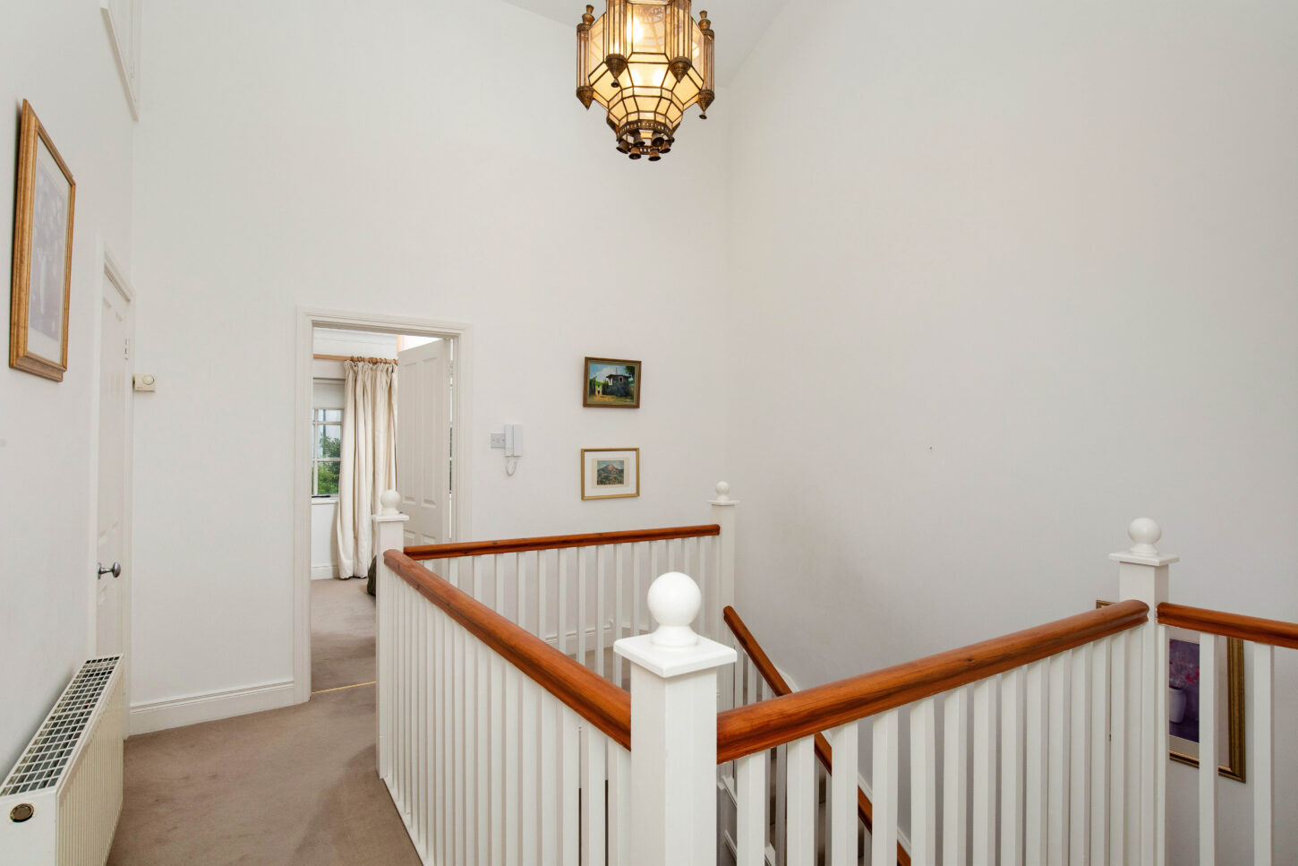 Number 34 is accessed via motorised gates from the lane. The courtyard to the front is generous. At ground floor an entrance lobby opens into the main living area with glazed double doors. Also off the entrance lobby is the kitchen to the left, and utility room to the right, with guest WC.